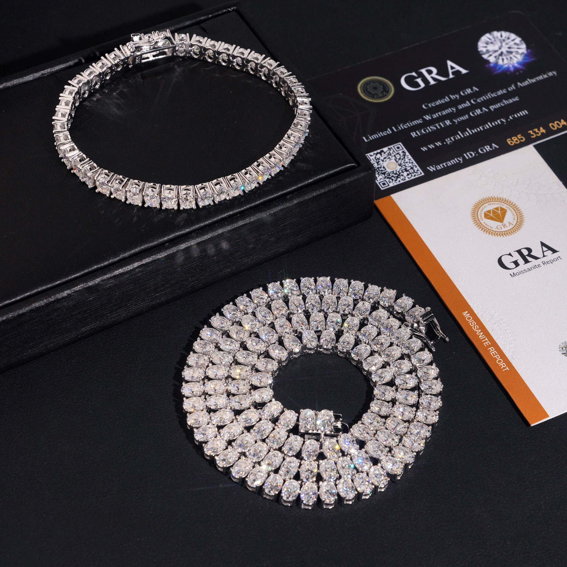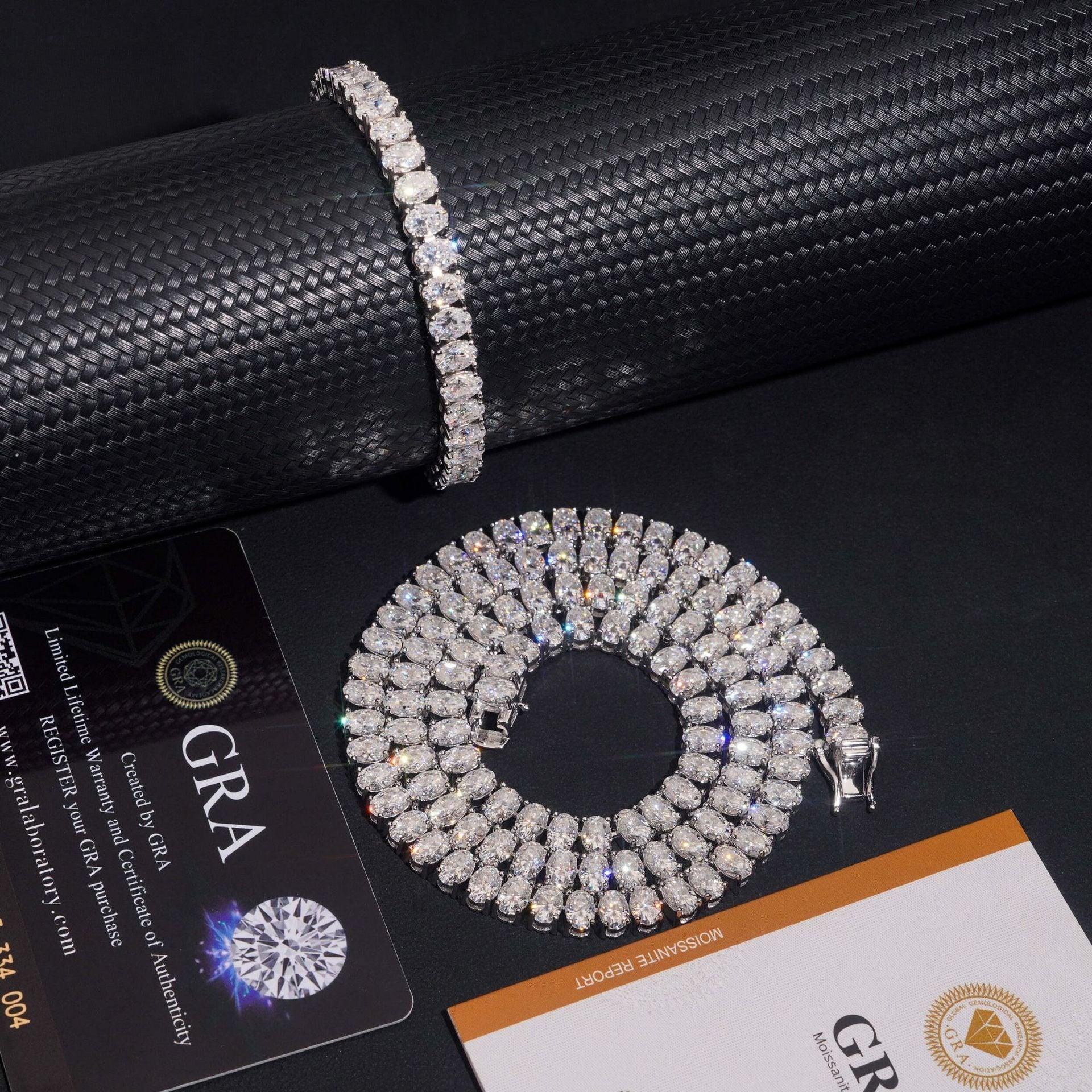 Clean. Sleek. Timeless. This 6MM Tennis Chain is crafted from solid S925 sterling silver and handset with lab-certified Moissanite stones that outshine CZ and pass the diamond tester with ease. Each piece comes with an official GRA certificate, guaranteeing authentic brilliance.